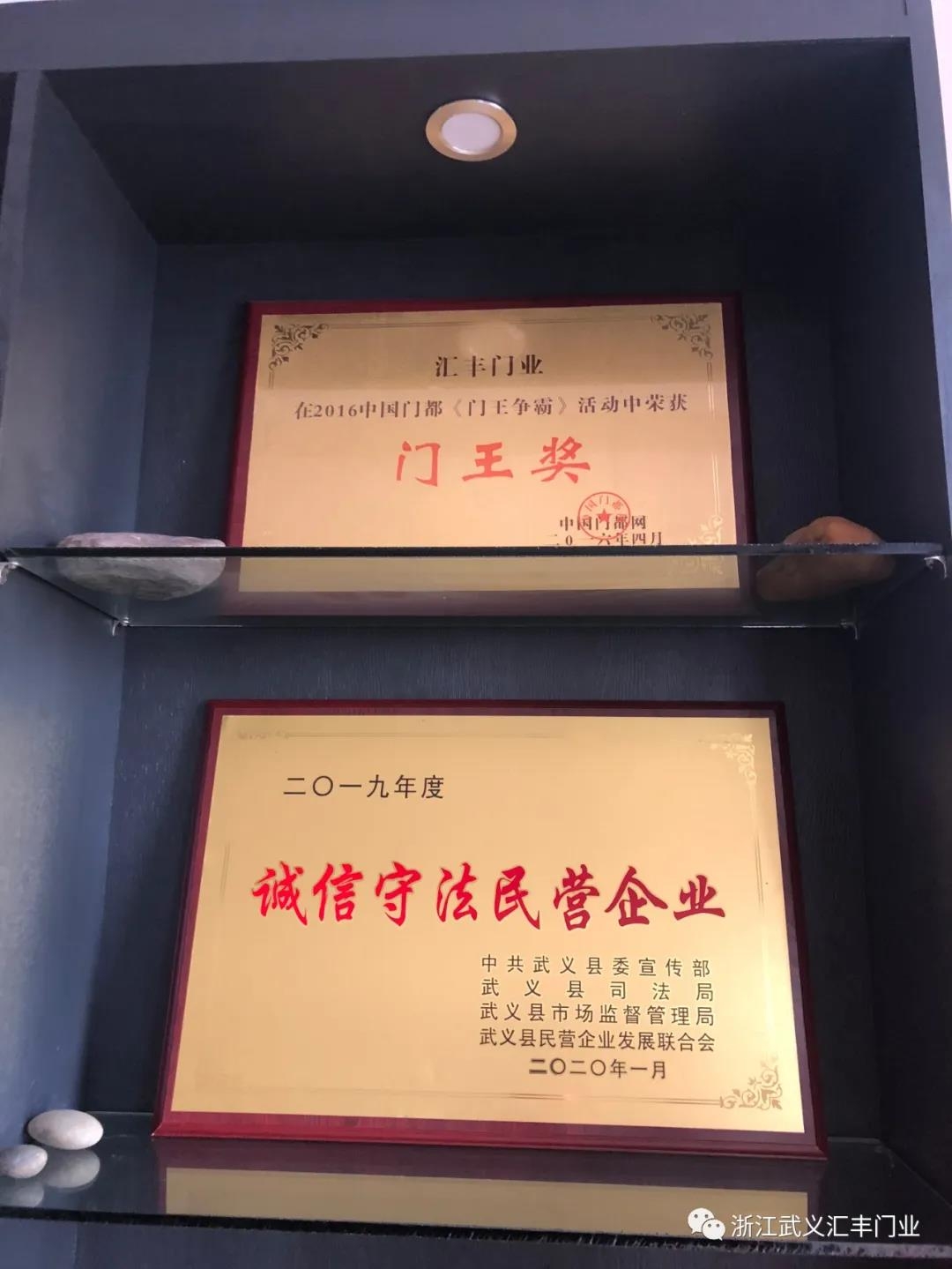 • 浙江武義匯豐門業(yè)憑借多年來的誠信經(jīng)營和良好口碑,被授予武義縣2019年度誠信守法民營企業(yè)榮譽稱號。